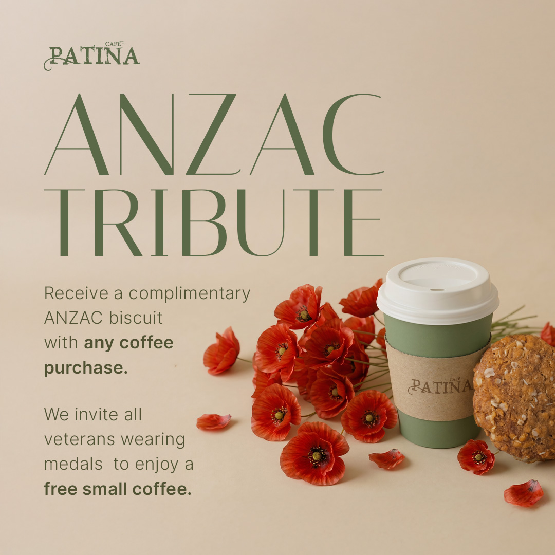 Enjoy a complimentary ANZAC biscuit with any coffee, and a free small coffee for veterans wearing their medals. Join us in remembering.